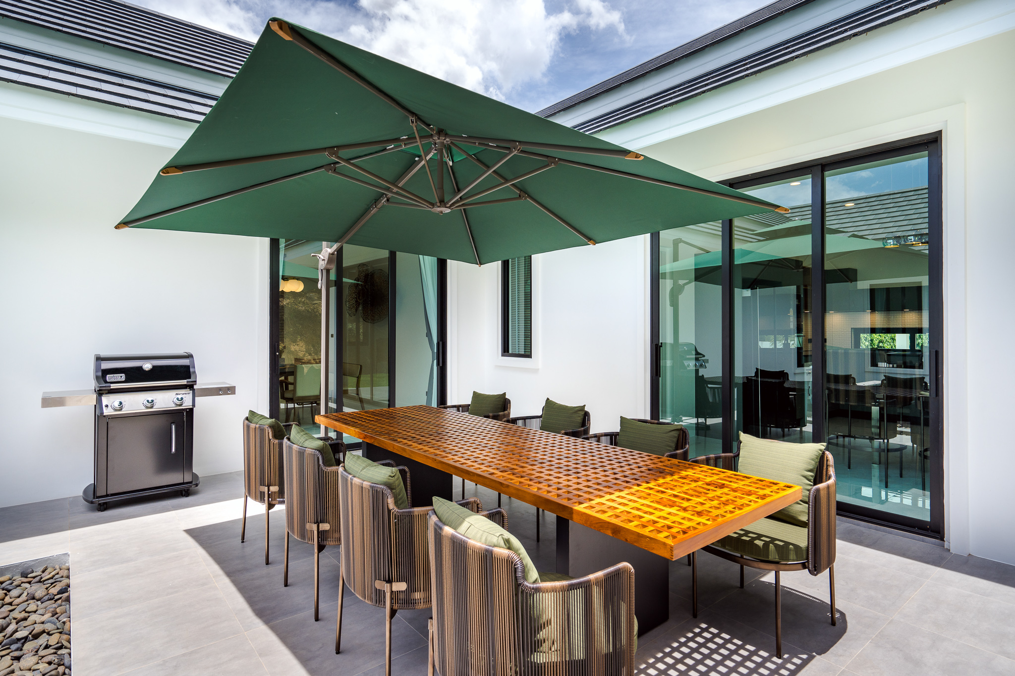 This luxury pool villa in Hua Hin Soi 112 is located just 15 minutes from Hua Hin town, Bluport Shopping Mall, and Hua Hin Beach, offering convenient access while maintaining a peaceful residential environment.