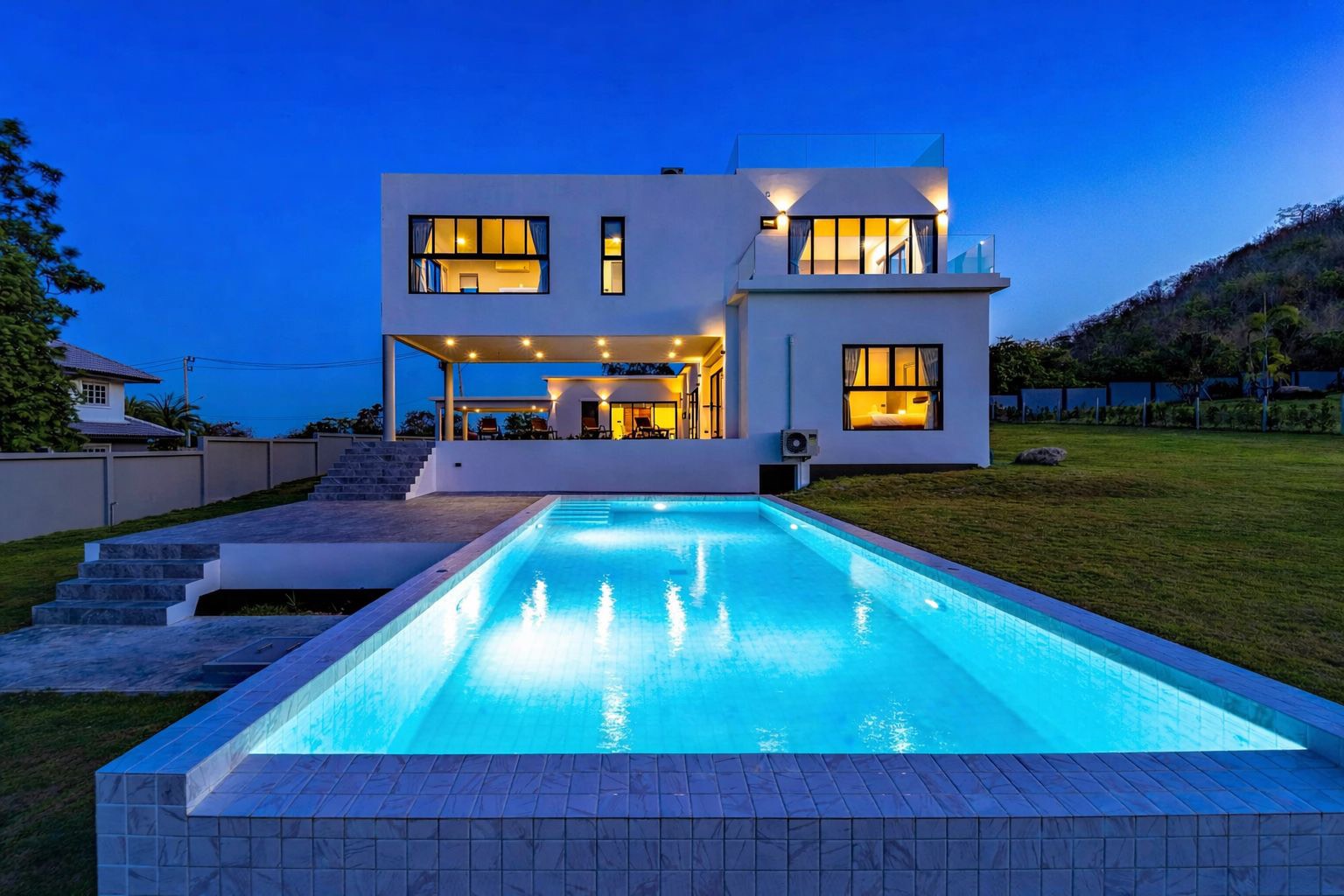 This luxury pool villa rental in Hua Hin Soi 116 offers a peaceful environment with convenient access to daily amenities.