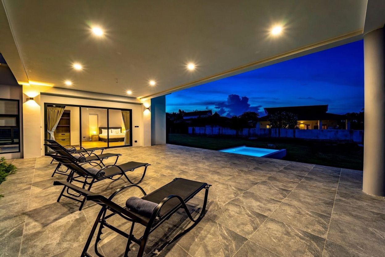 This 4-bedroom private pool villa in Hua Hin Soi 116 offers exceptional space, privacy, and comfort, ideal for families and long-term residents.