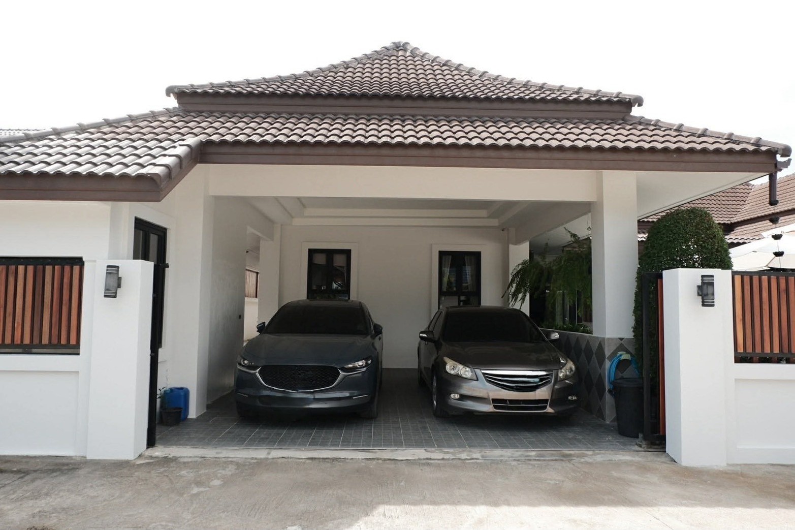 • Covered parking for 2 cars