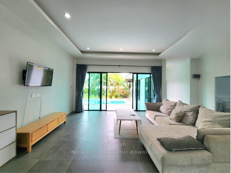 This fully furnished pool villa in Hua Hin is well-maintained and move-in ready, offering a comfortable indoor layout and generous outdoor living space.